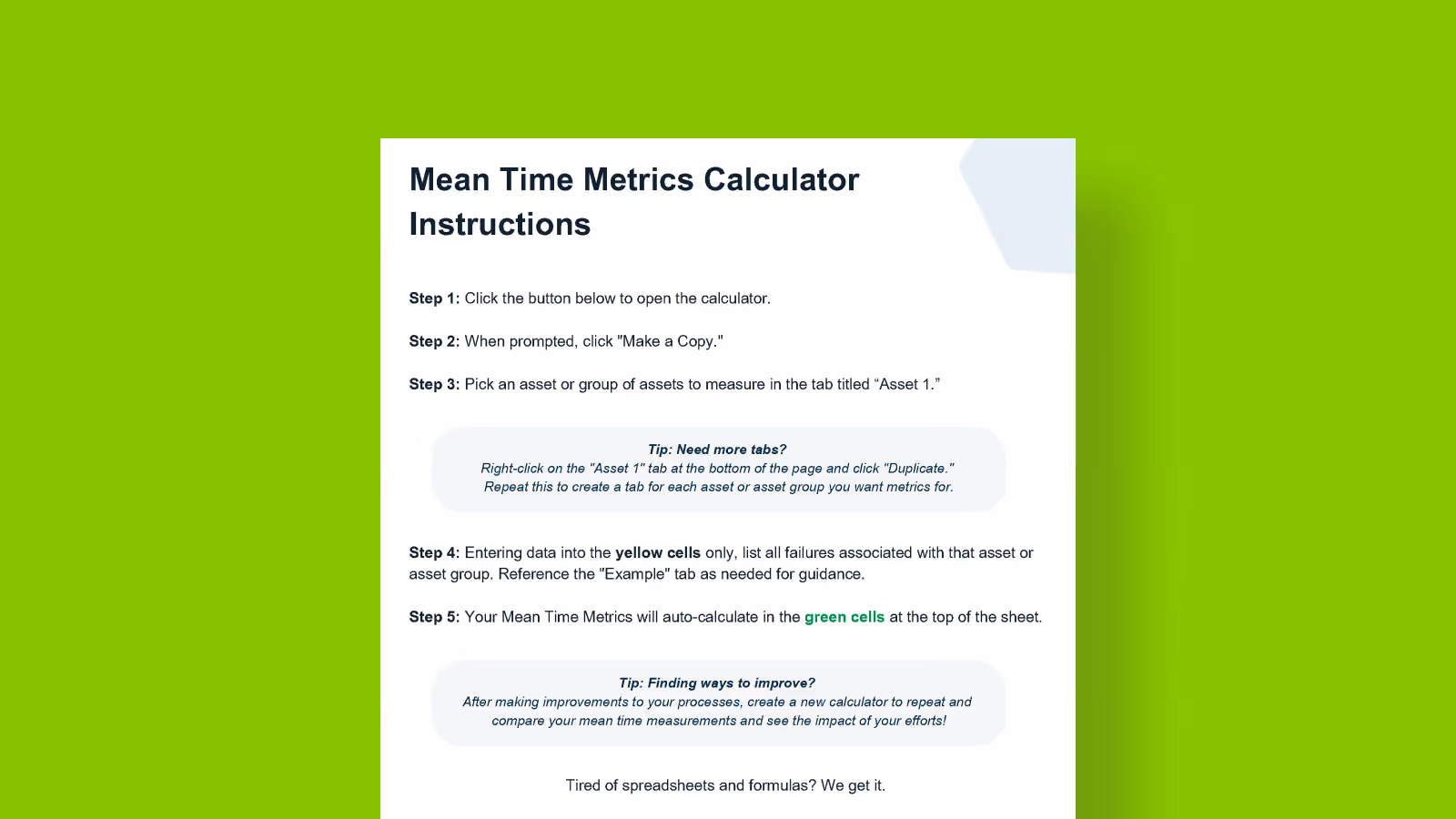 We’ve received your information and your Mean Time Metrics Calculator is ready.