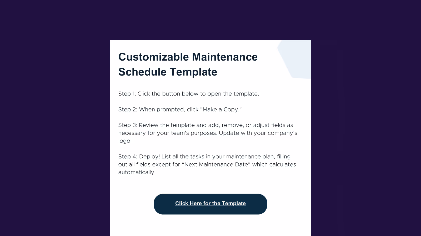 We’ve received your information and your Maintenance Schedule Template is ready.