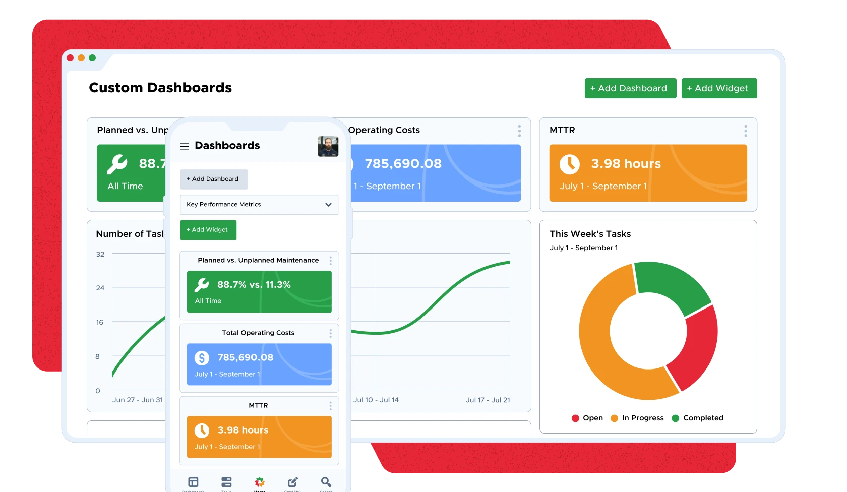 - Easily monitor maintenance team productivity and maintenance schedules.