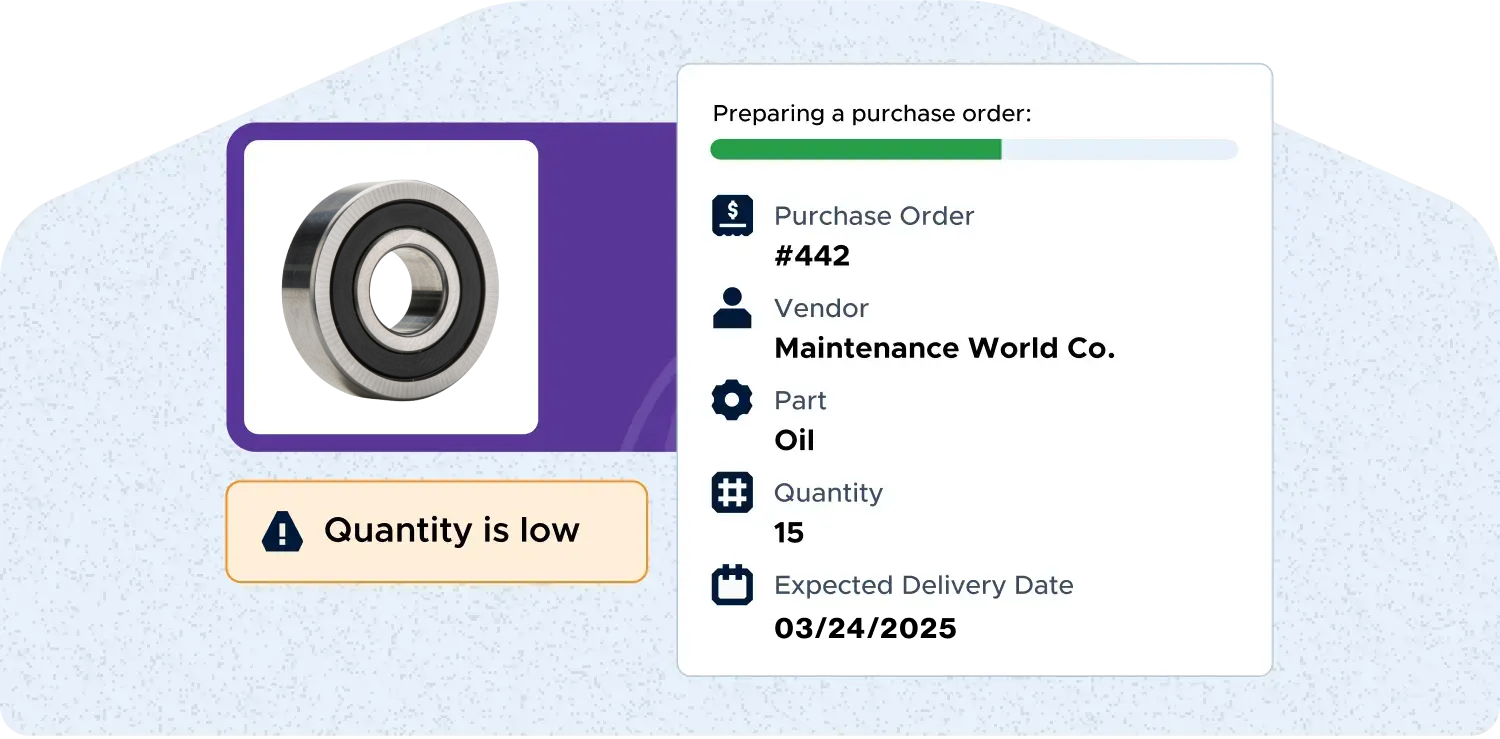 Invite vendors to join you on Limble or share important orders and tasks via email. You can configure the platform to auto-schedule PM work that requires vendor action, triggering reminders to order spare parts before they drop below your specific threshold.