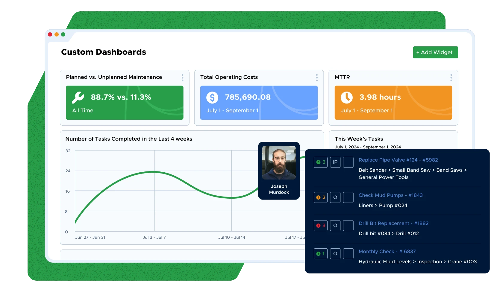 - Track downtime trends and maintenance costs.