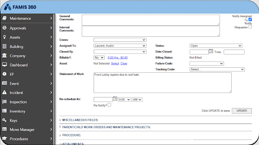 - Accruent FAMIS 360 – Powerful data consolidation and reporting flexibility built for complex facility operations.