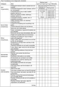 5S example: Workplace scan diagnostic checklist