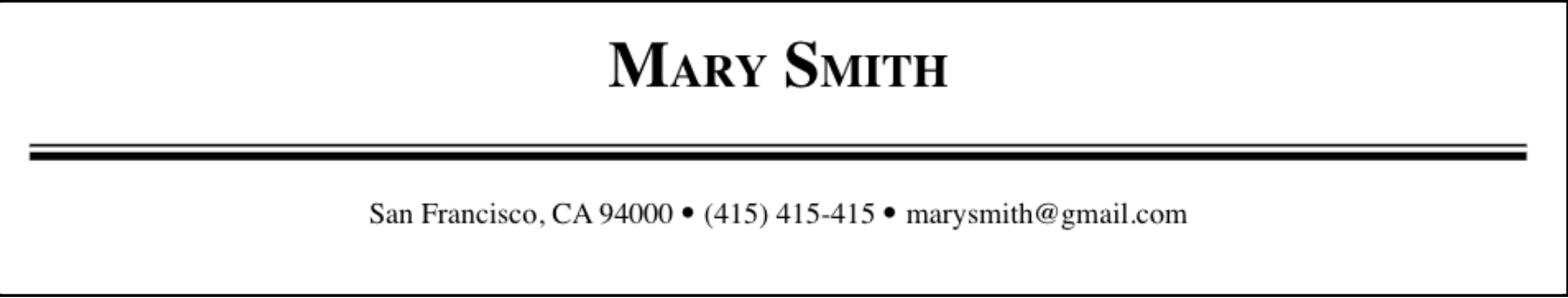 There’s no secret in this first part. It must contain your contact information on the top of the page, emphasizing your name but making sure that this section doesn’t take too much space on your resume.