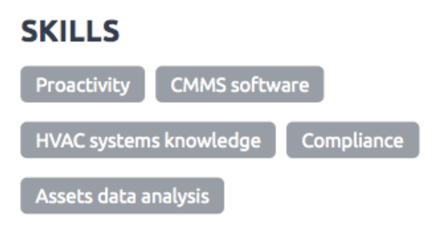 Once you find out what they are, make sure to make them as specific as they can be. For example, instead of adding “technical knowledge”, you can add “HVAC building systems knowledge” as a skill.