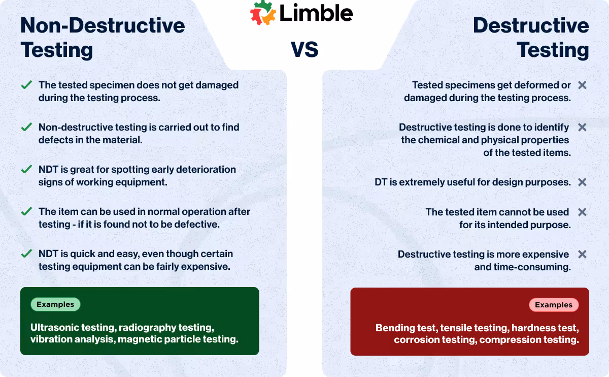 - Destructive methods permanently alter or destroy the component