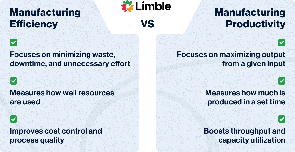 Efficiency and productivity are often used interchangeably — but in manufacturing, they are not exactly the same: