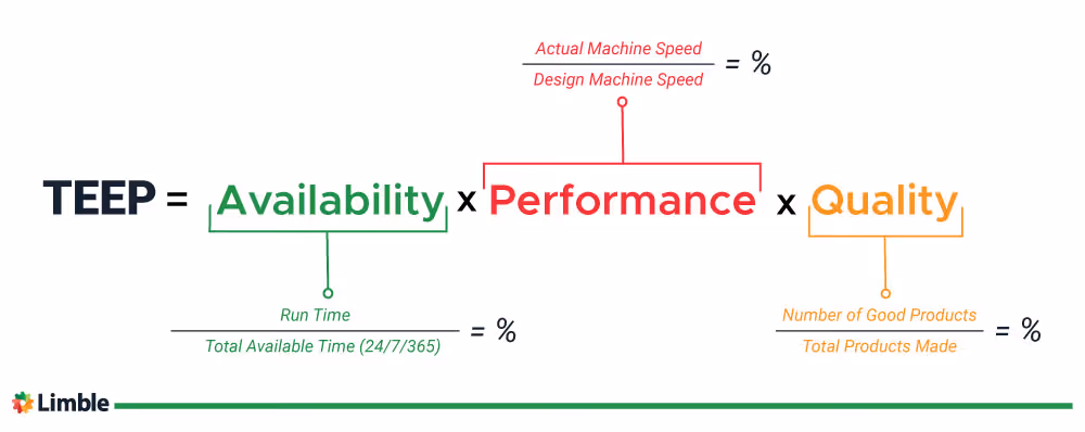 TEEP is one of three key metrics organizations use to work toward improvement in manufacturing — the other two being Overall Equipment Effectiveness (OEE) and Overall Operations Effectiveness (OOE).