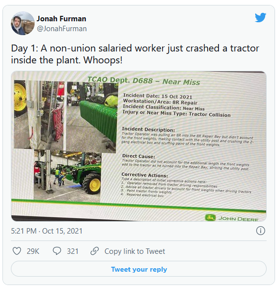 Similarly, an equipment operator who is not adequately trained for work on a certain machine and needs to work on it due to short staffing or unexpected absences, is more likely to be a danger for themselves, their surroundings, as well as the equipment they are using. John Deere experienced this exact issue just a few days ago.